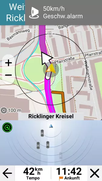 Garmin bietet als dritte Möglichkeit eine Garmin eine Z1 App (iPhone/Android) an, die Einstellungen der Radarempfindlichkeit zulässt und eine Vollbild-Radar-Anzeige bietet. Somit ist nicht unbedingt eines der neuen Geräte notwendig, um den vollen Funktionsumfang zu nutzen, allerdings empfiehlt sich, das Handy im Blickfeld haben