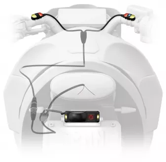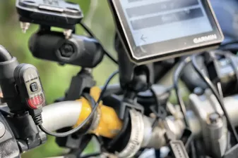 Die Montage der R1 ist einfach, allerdings ist das Gerät kabelgebunden. Die Kabel müssen verlegt und an die Batterie angeschlossen werden. Anschließend erfolgt die Kopplung via Bluetooth, woraufhin R1 auf dem Bildschirm der Navis der 2. Generation von Tread und Zumo XT erscheint. Das Garmin Z1 Radar kann entweder separat oder mit visualisierter Anzeige und Zusatzfunktionen auf Tread 2 oder Zumo XT2 benutzt werden. Ohne Bildschirmgeräte signalisieren die beiden Blinklichter, die an den Rückspiegeln montiert werden, dass sich Fahrzeuge im toten Winkel befinden. Auch für den hinterherfahrenden Verkehr werden Signale ausgesendet, doch dazu später.