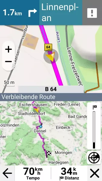 In unserem Test reichte die Standard-Einstellung aus, um Autos, Lkw, Motorräder relativ zuverlässig zu erkennen. Je nach relativer Fortbewegungsrichtung werden Nachfahrende gut erkannt. Gelangen sie in den Bereich des toten Winkels, leuchten die an den Seitenspiegeln befestigten Indikatoren. Leuchten Sie nicht, ist in der Regel auch genug Platz, um z. B. nach einem Überholvorgang einzuscheren. Das ist eine weitere Hilfe.