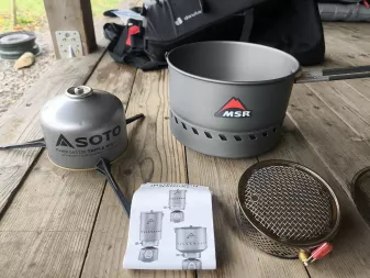 Der MSR Kocher Reactor ist kein Kocher, sondern ein Kochsystem. Topf (3 Größen) und Kocher sind aufeinander abgestimmt. Das Besondere: es ist kein Windschutz notwendig, der Kocher benutzt die Luft, die von den Seiten anströhmt und reguliert sie selber.
