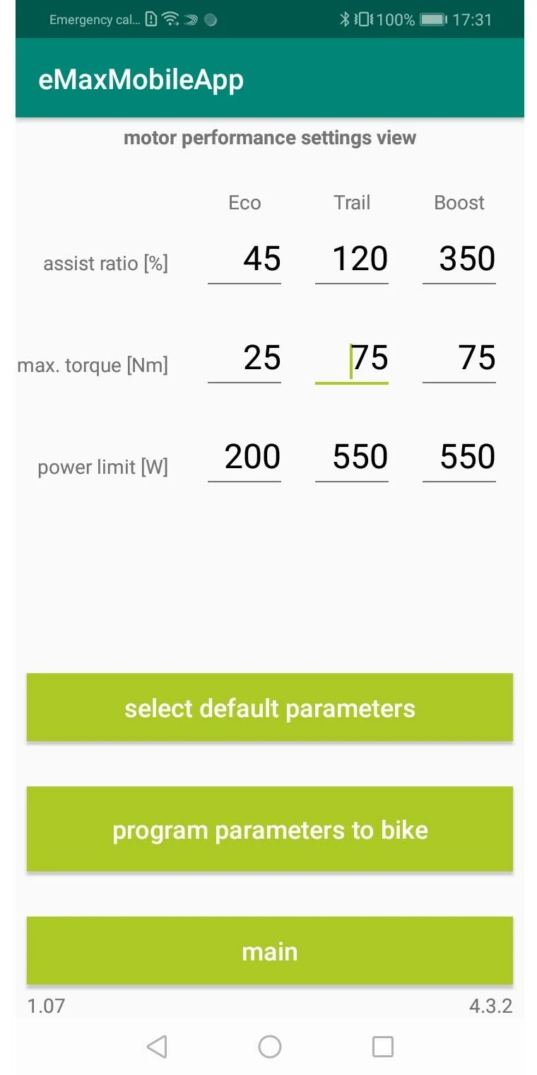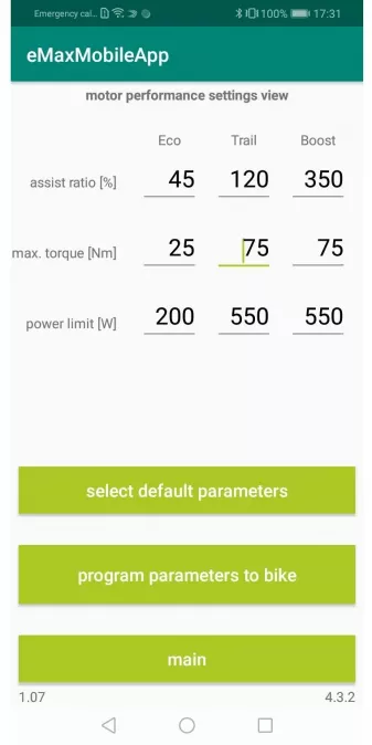 Sobald die initiale Optimierung einmal per Kabel und Lizenzschlüssel durchgeführt wurde, lässt sich die Motorunterstützungsgeschwindigkeit nachträglich bequem über die eMaxMobileApp (iOS und Android) per Bluetooth zwischen 25 und 45 km/h anpassen – ohne erneuten PC-Einsatz, ohne Kabel, direkt vom Smartphone aus.