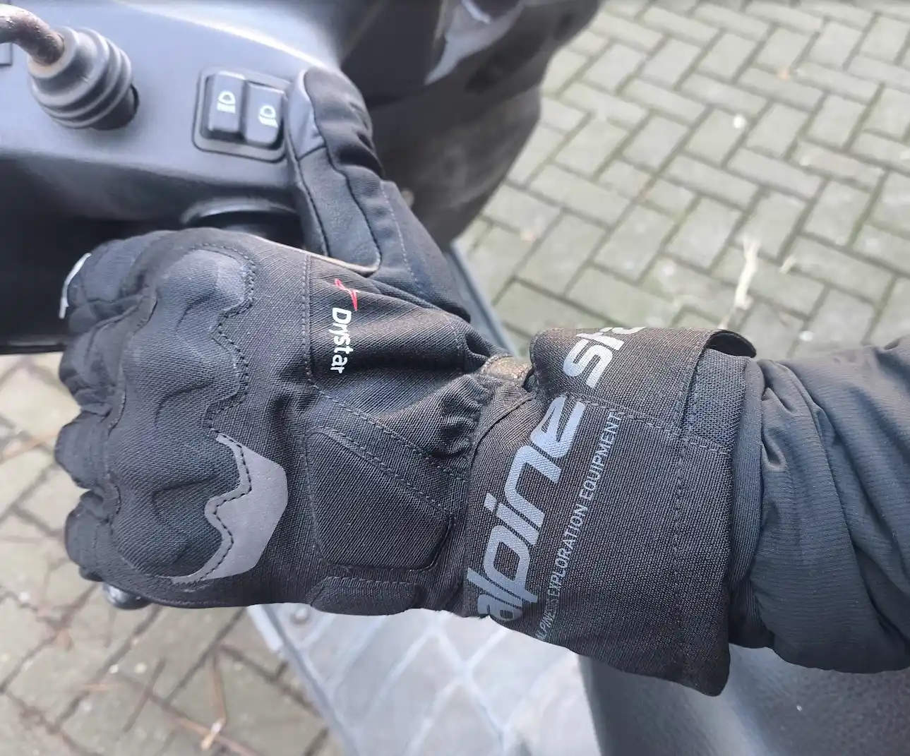 Die Drystar-Membran ist eine proprietäre, nicht näher chemisch spezifizierte Alpinestars-Lösung, die funktional im Segment der klassischen PU-basierten, mikroporösen oder hydrophilen Membranen einzuordnen ist. Im Vergleich zu Marken wie Gore-Tex ist weniger über die genaue Ökobilanz und eventuelle Fluorchemie bekannt, funktional liefert sie aber den üblichen Mix aus Wasserdichtigkeit und Atmungsaktivität eines Tourenhandschuhs der Mittelklasse. Mehr dazu weiter unten.